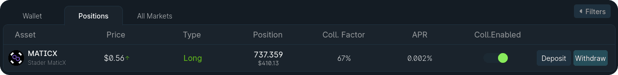You can now see in your Positions table, that the exposure to MATICX and WBTC both decreased: